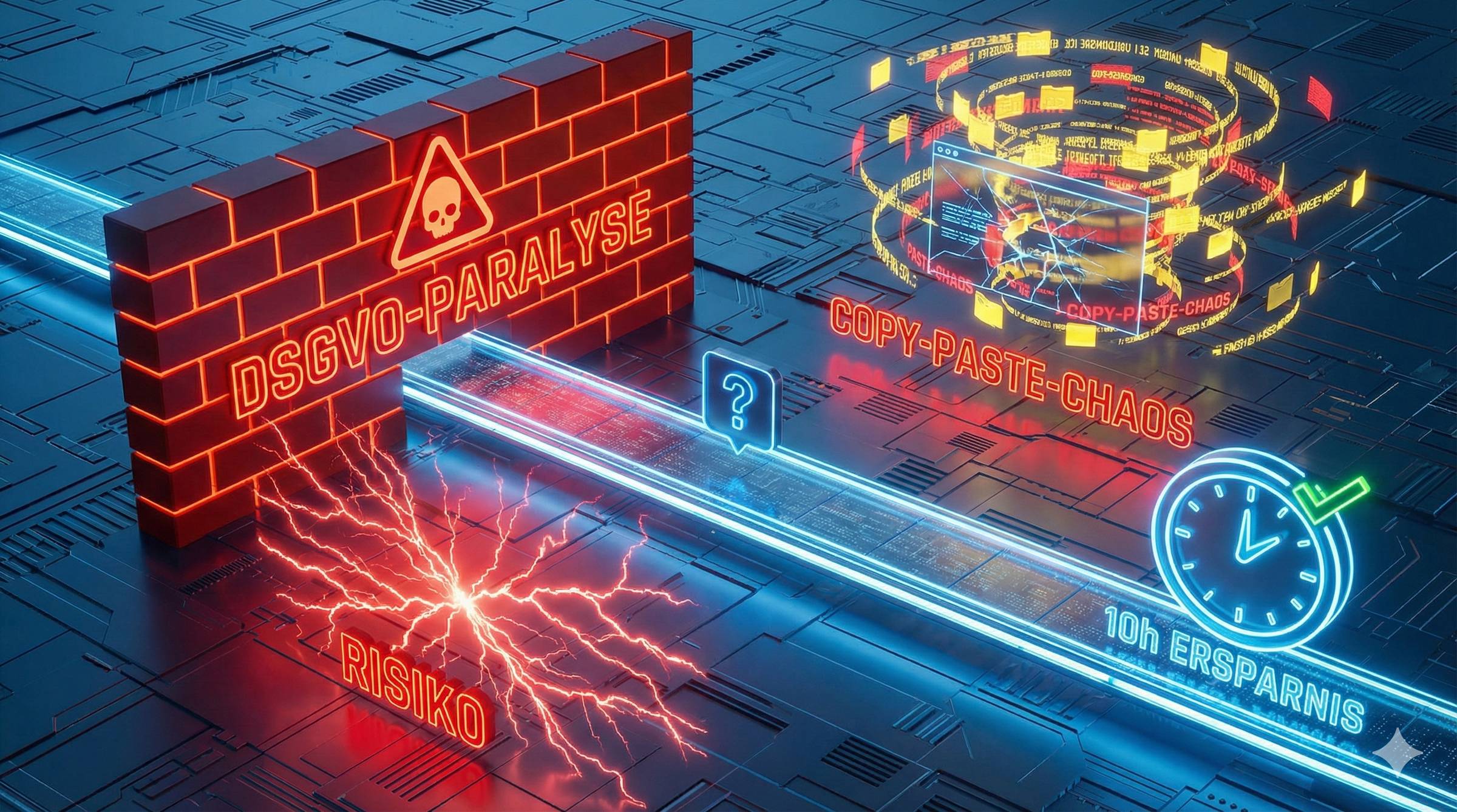 Die Wahrheit: Du kannst nur dann 10 Stunden pro Mitarbeiter/Woche sparen, wenn beide Fallen gleichzeitig geschlossen werden: durch DSGVO-sicheres Verständnis und fehlerfreie Implementation.